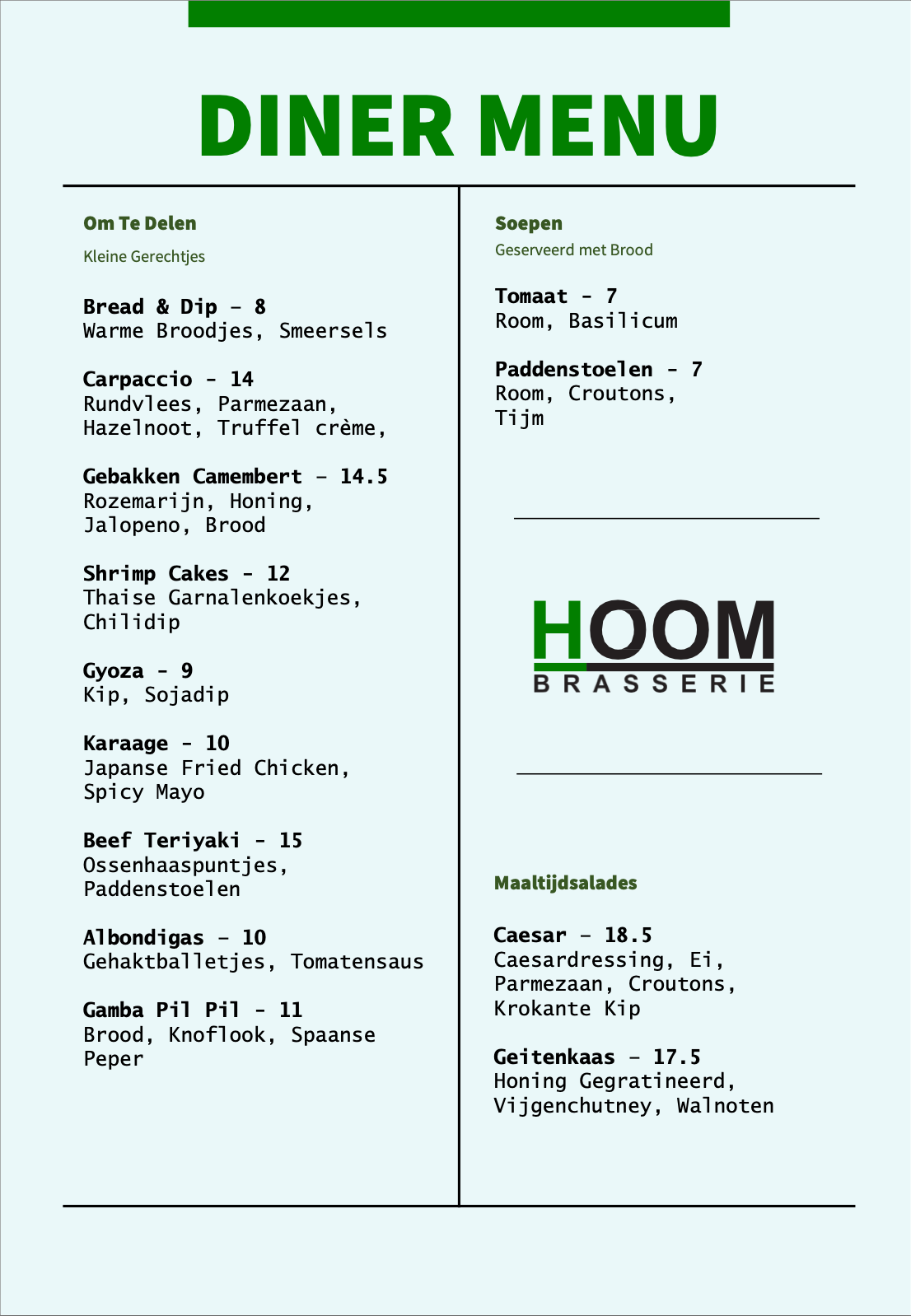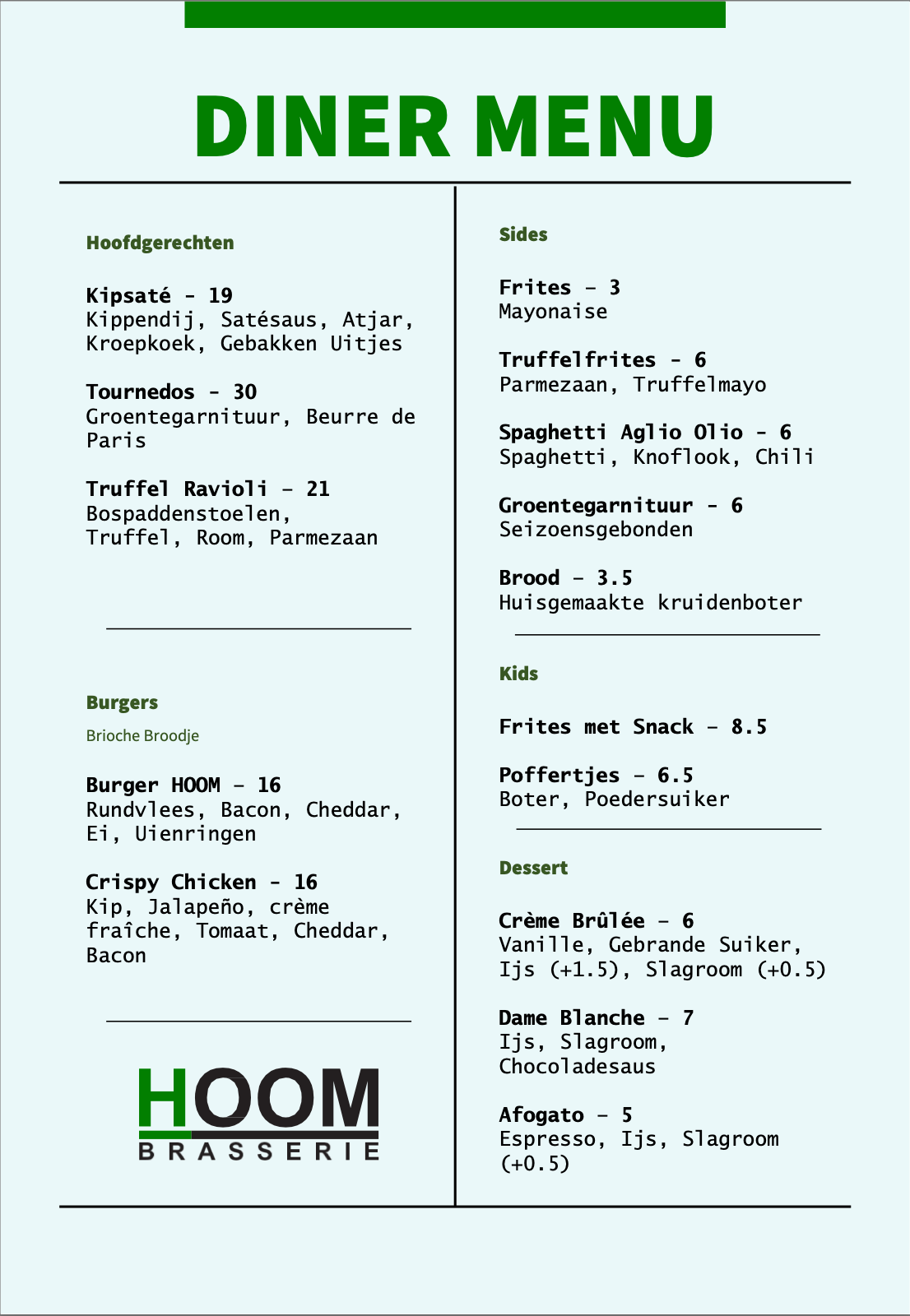 Brasserie HOOM | Den Hof 98, Waalre | 040-222 3003 | reserveringen@brasseriehoom.nl