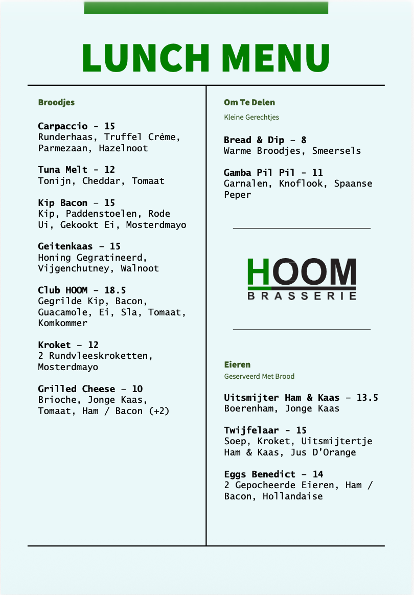 Brasserie HOOM | Den Hof 98, Waalre | 040-222 3003 | info@brasseriehoom.nl